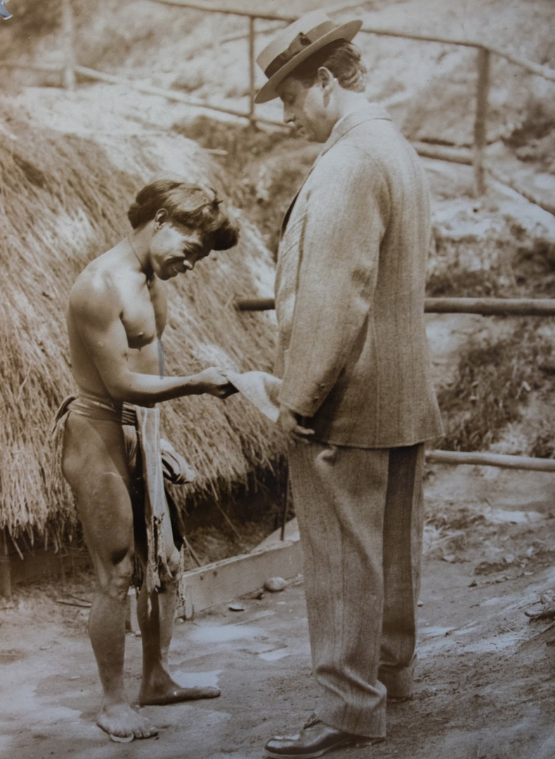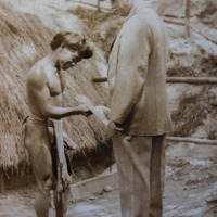 - [Philippino Curiously examining an American costume], Photographs of Igorot Villages, Philippines and Hawaii undated, box 1, Richard Schneidewind papers, Bentley Historical Library, University of Michigan