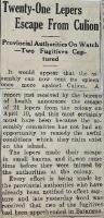 Manila Daily Bulletin Article About Patients Escaping Culion An image of the Manila Daily Bulletin newspaper article about twenty-one patients escaping Culion, describing them as fugitives.