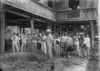 The Culion Band A photograph of a band formed by the Culion community composed entirely of patients on the island. Various ages and instruments are seen including the cymbals and the tuba. They have music stands with sheets of music. Some are wearing shoes or sandals while others are barefoot. A conductor stands front and center with a bright hat. Patients on the island were encouraged to maintain civic pride on the island and explored this in many ways from holding elections to raising cattle to performing as a band.